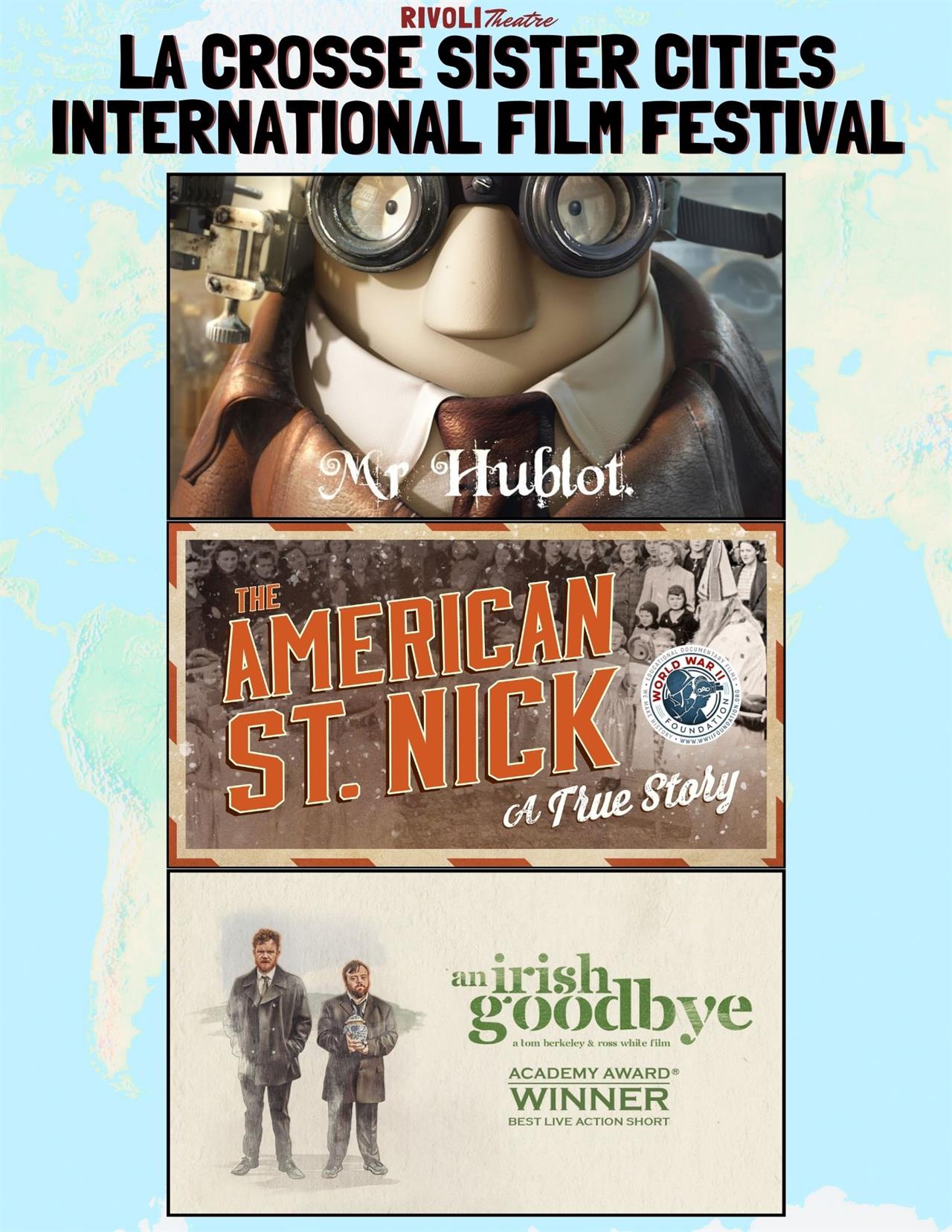 Please note that Mr. Hublot and The American St. Nick are family-friendly films suitable for all ages. However, An Irish Goodbye contains strong language, so viewer discretion is advised. There will be a brief intermission before An Irish Goodbye begins, allowing viewers to exit or grab a snack at the concession stand.