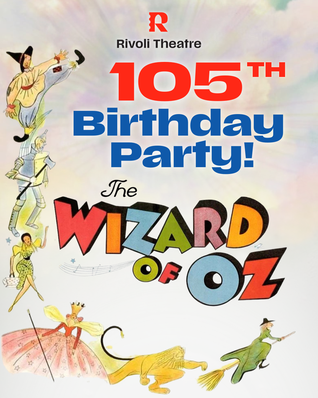 Celebrate with us and enjoy 1920's pricing for movie admission and popcorn! Doors open at 5:00pm, on-screen entertainment from 5:00pm-6:00pm, and showtime for The Wizard of Oz is 6:00pm. First come, first seated.